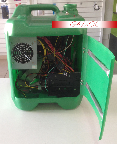 PC dentro de um galão de óleo